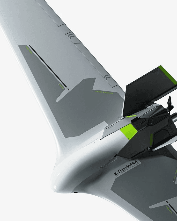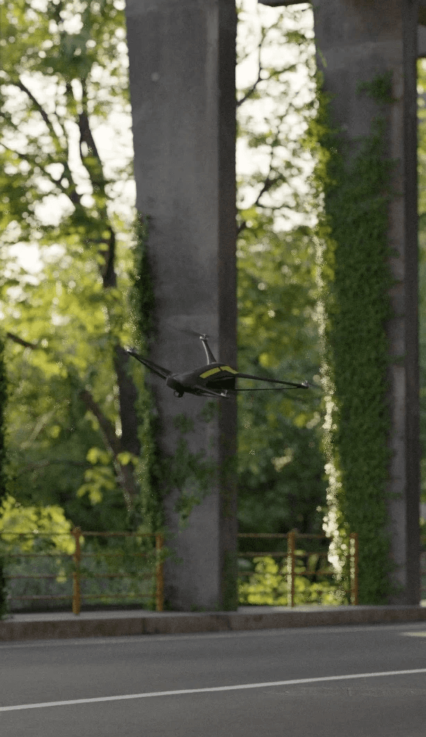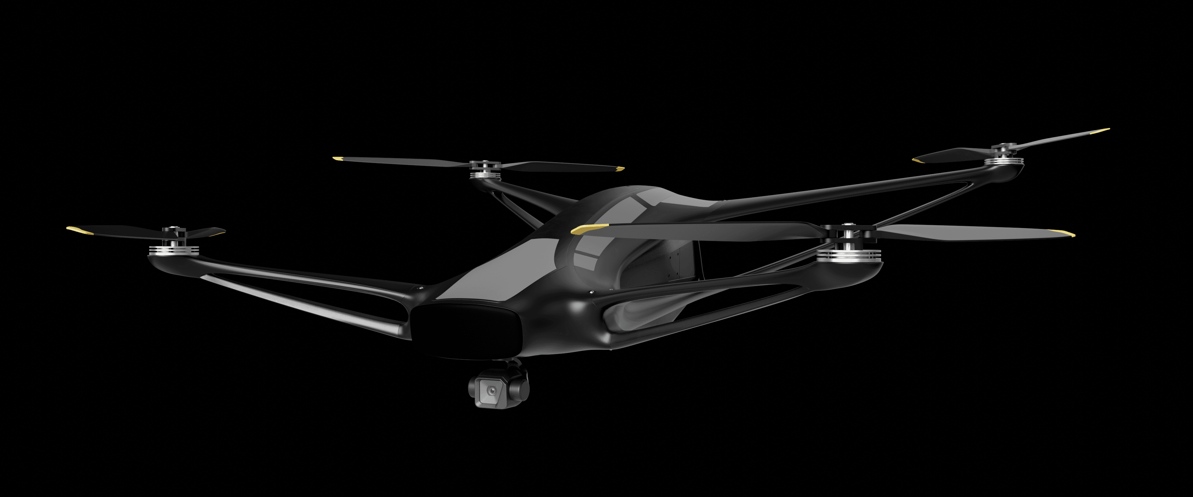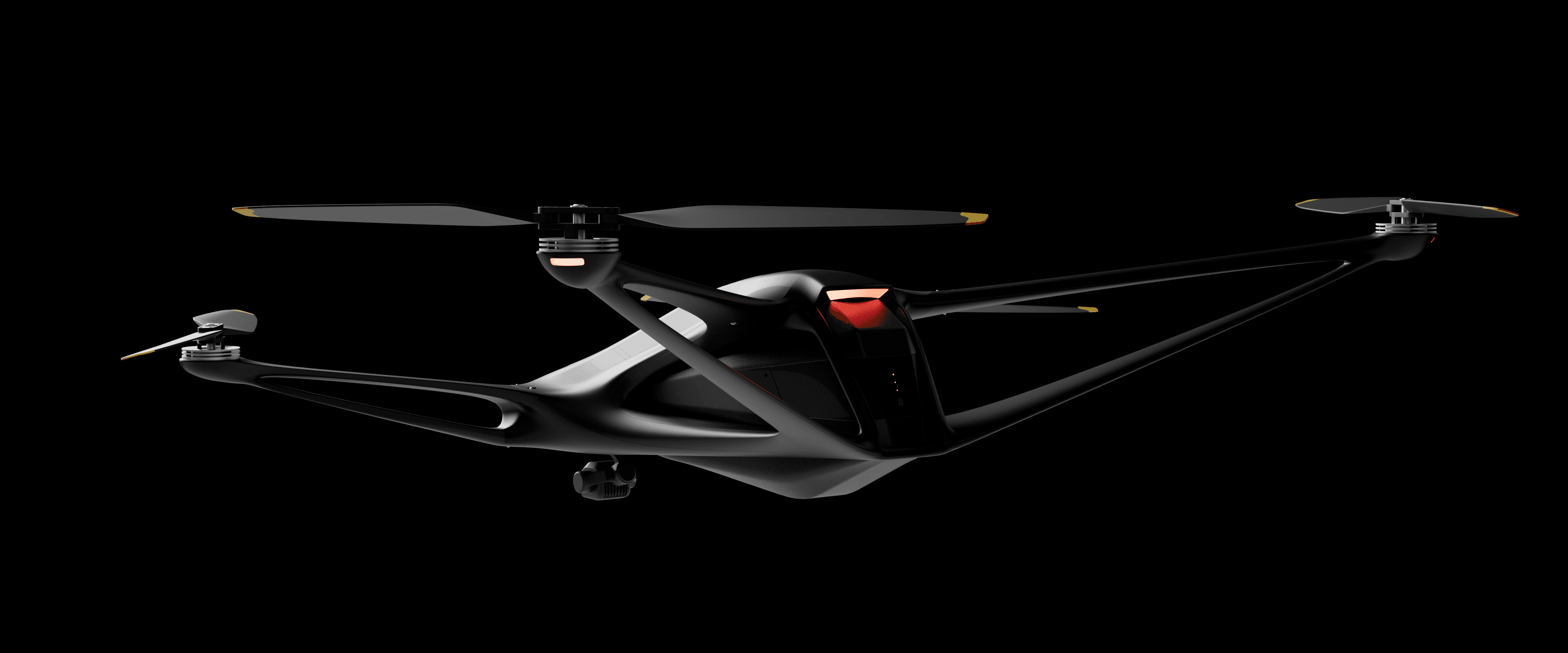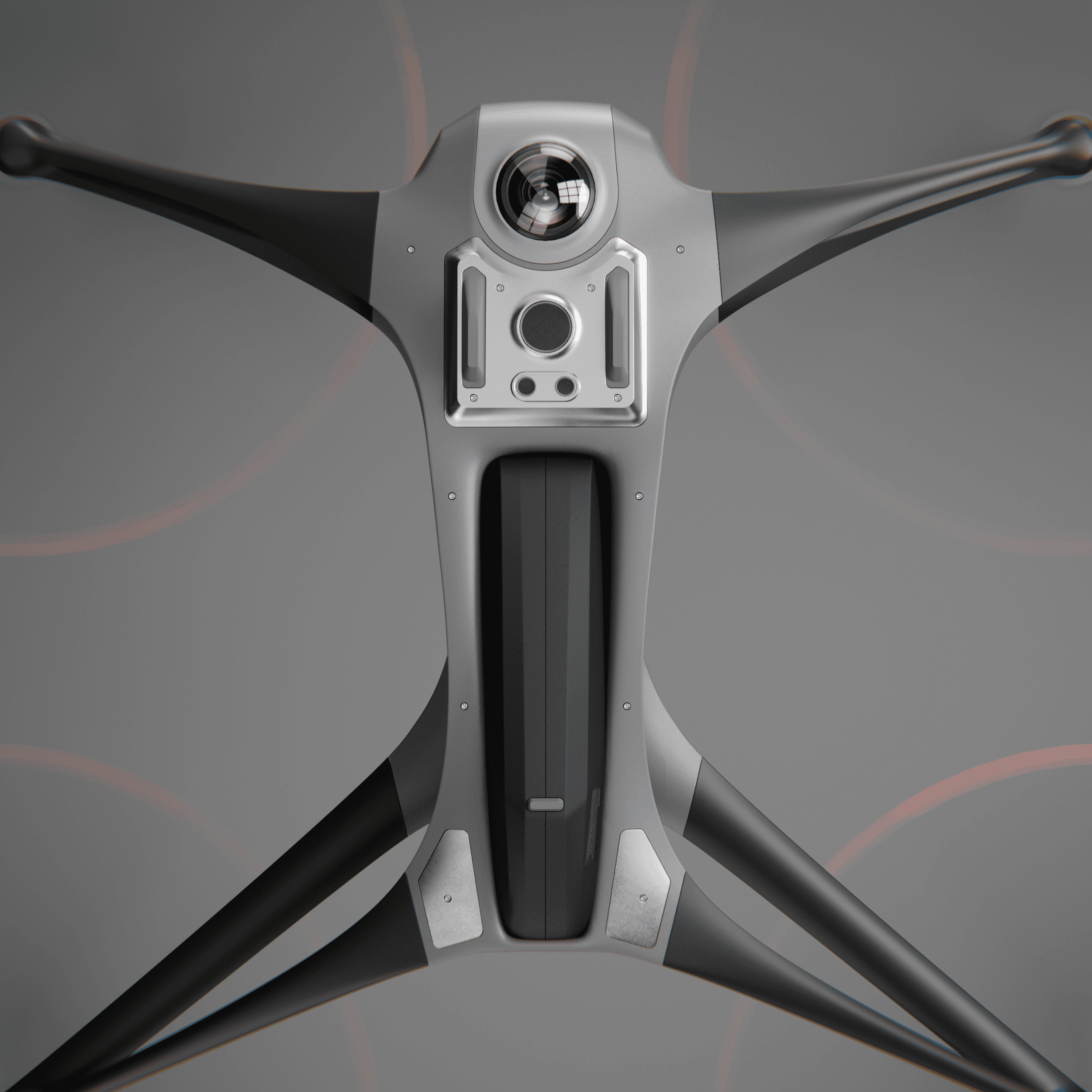 A smooth, aerodynamic form that reduces drag in flight while giving the drone a clean, fast, and purpose-driven appearance.