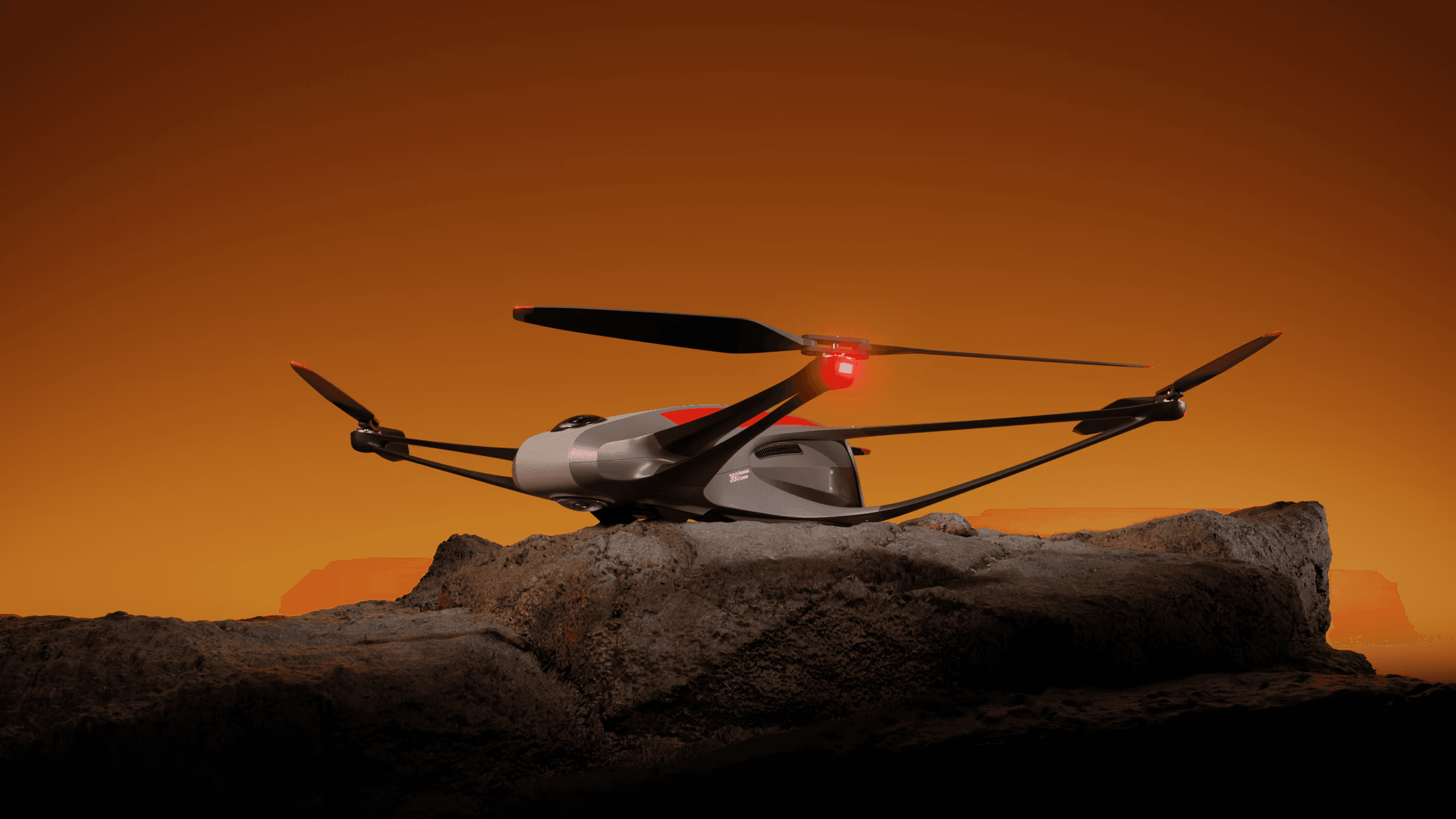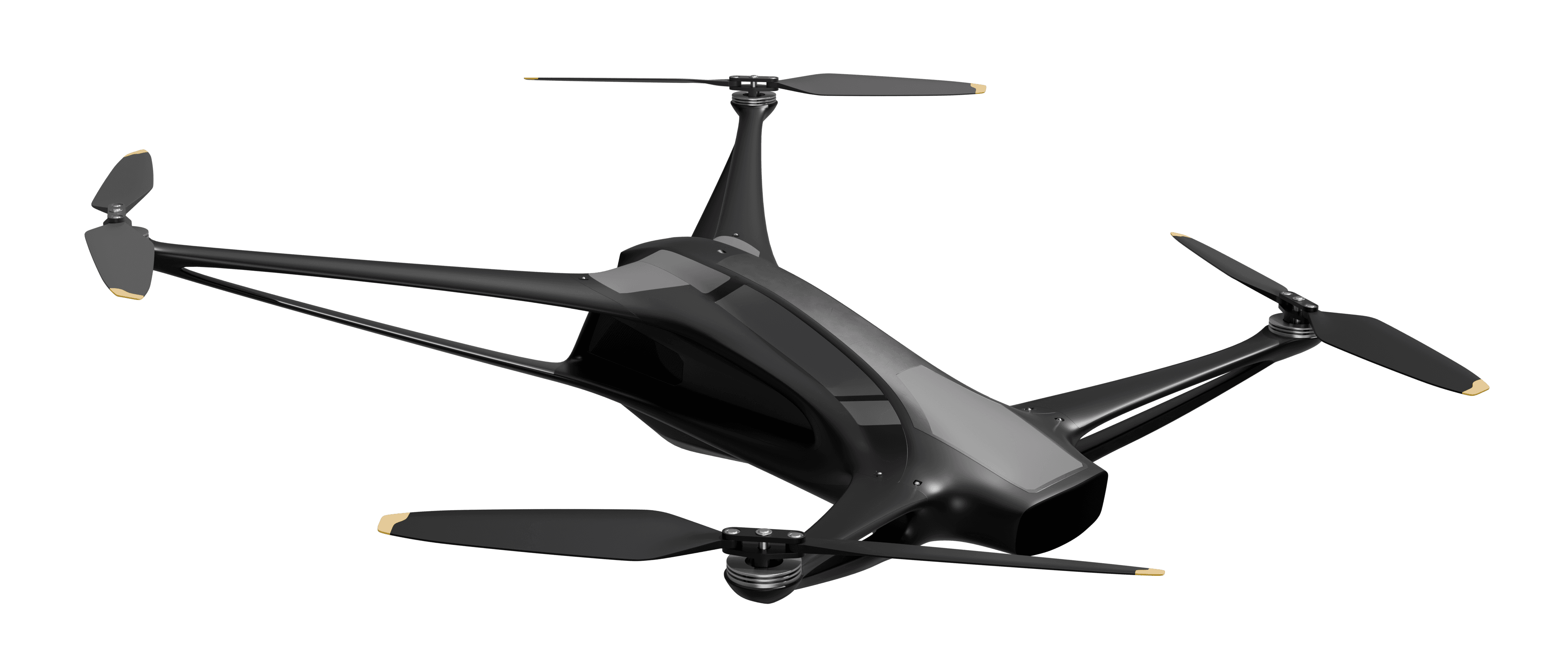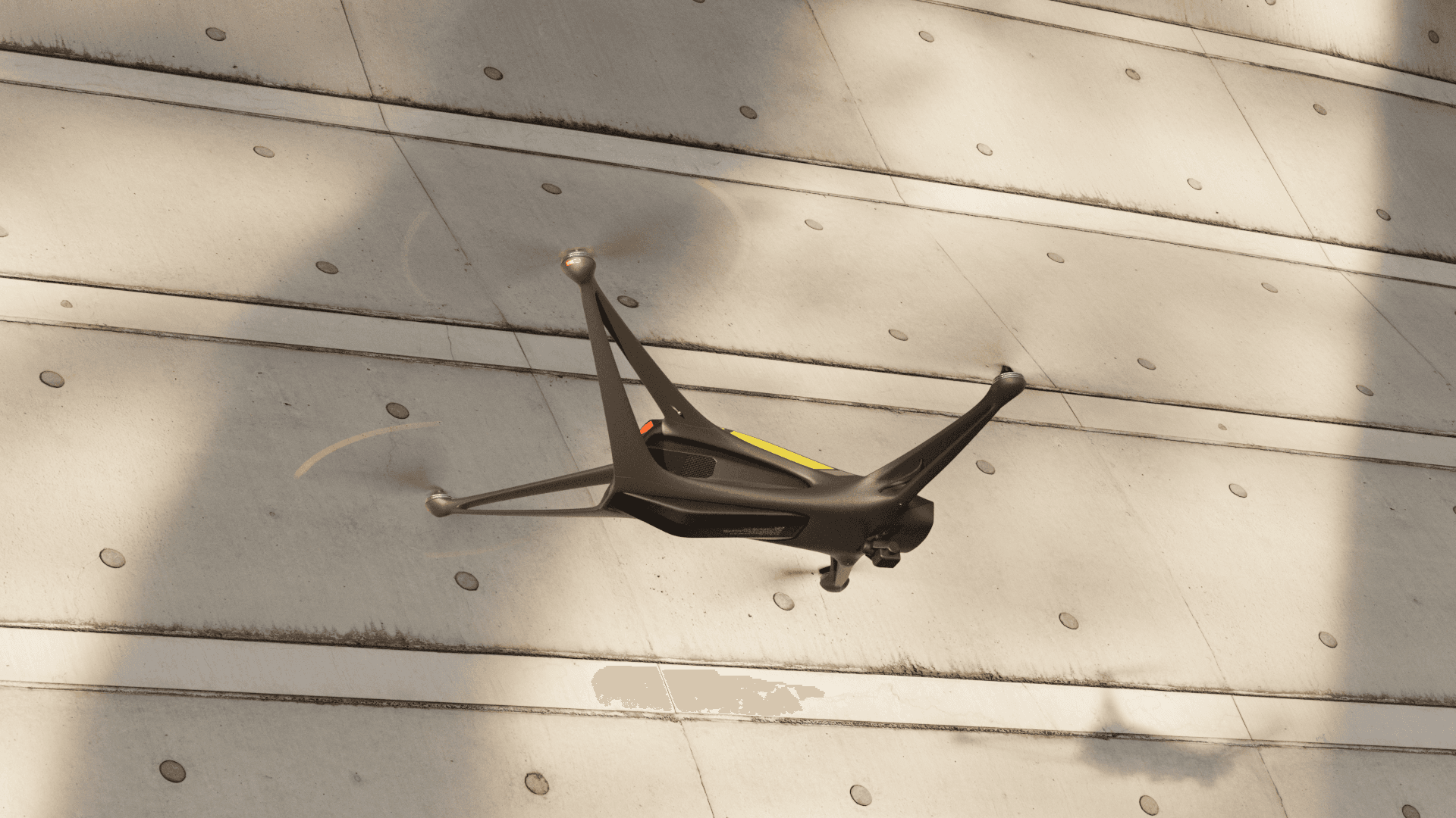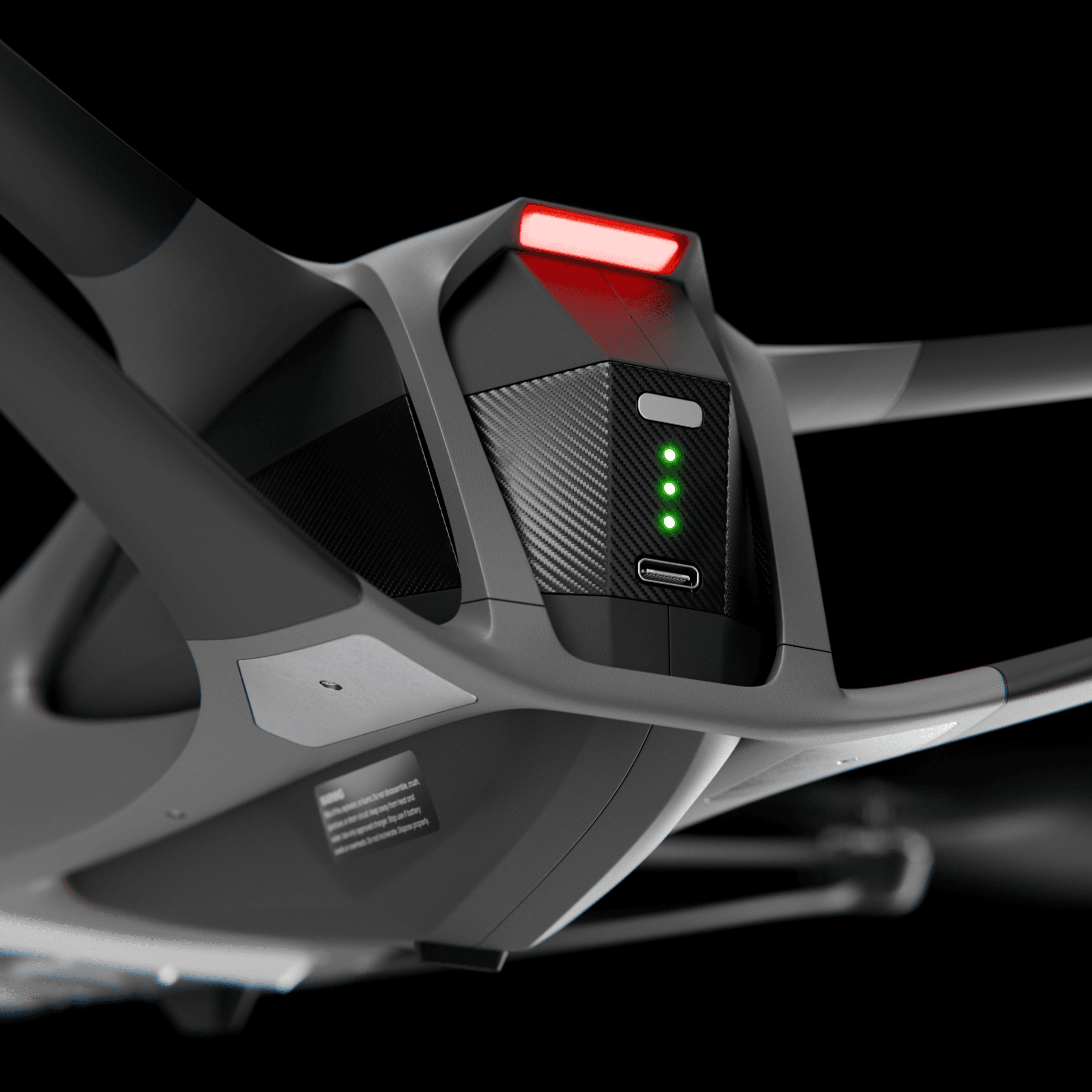 A smooth, aerodynamic form that reduces drag in flight while giving the drone a clean, fast, and purpose-driven appearance.