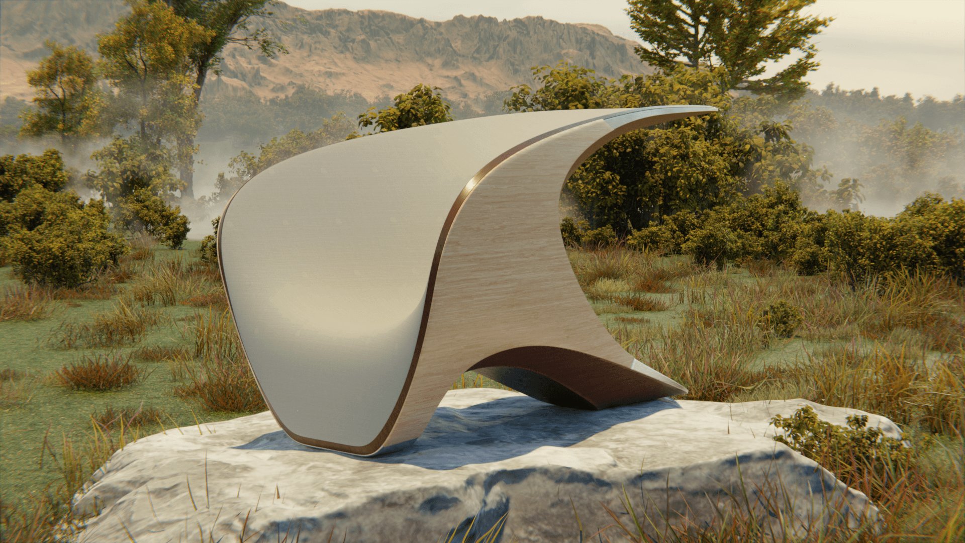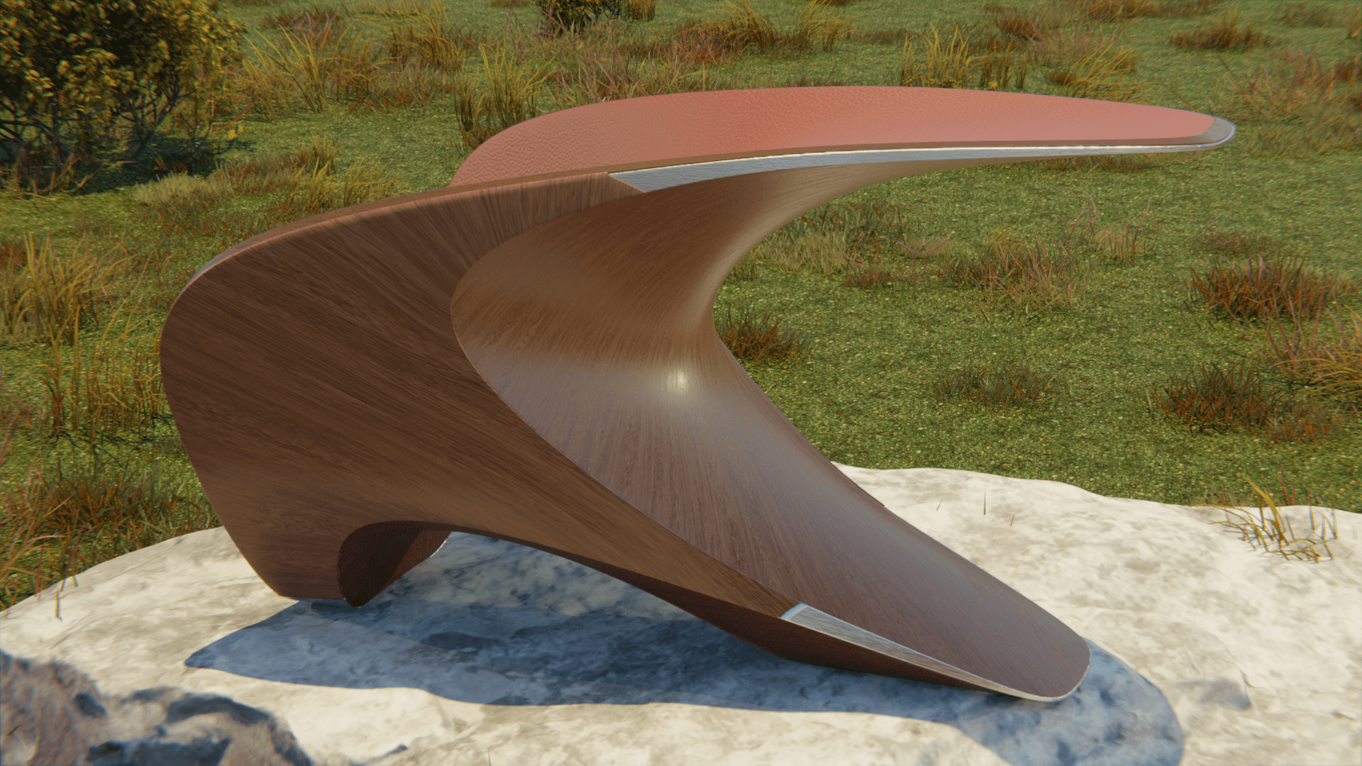 The form is developed as a continuous surface, where structure and seating merge into one geometry.